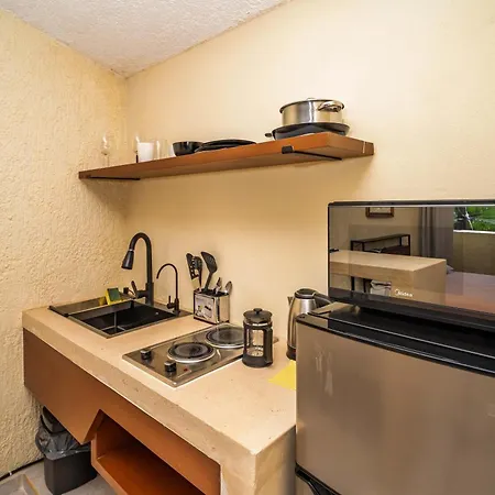 تشتمل هذه الشقة على المطبخ، وتوفّر المايكرويف والبرَّاد. وتقع الشقة على بعد 5 دقيقة تقريبًا مشياً على الأقدام من المقهى Starbucks. محطة حافلات R2-94 Av. Tulum ADO تقع على مسافة قريبة من الشقة.